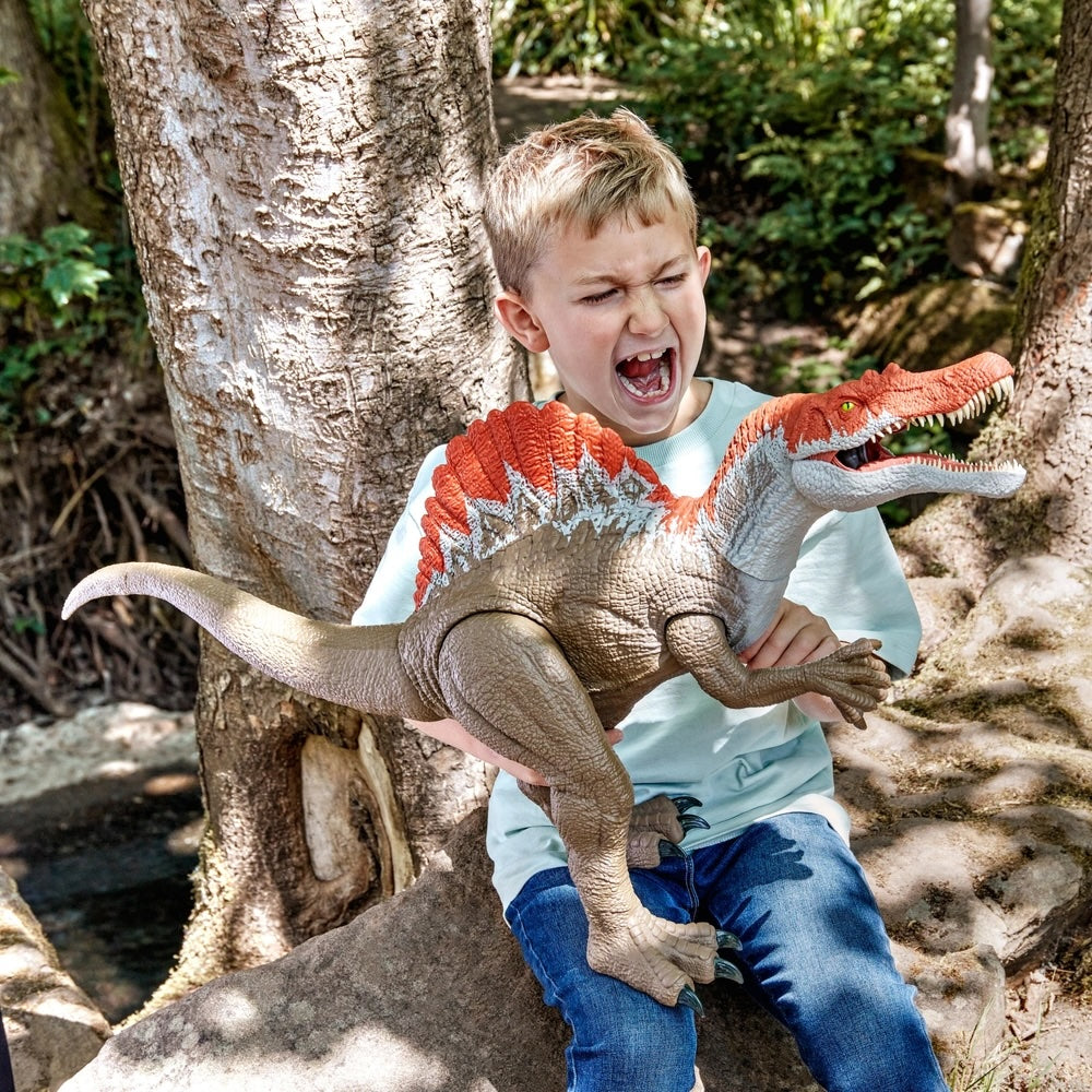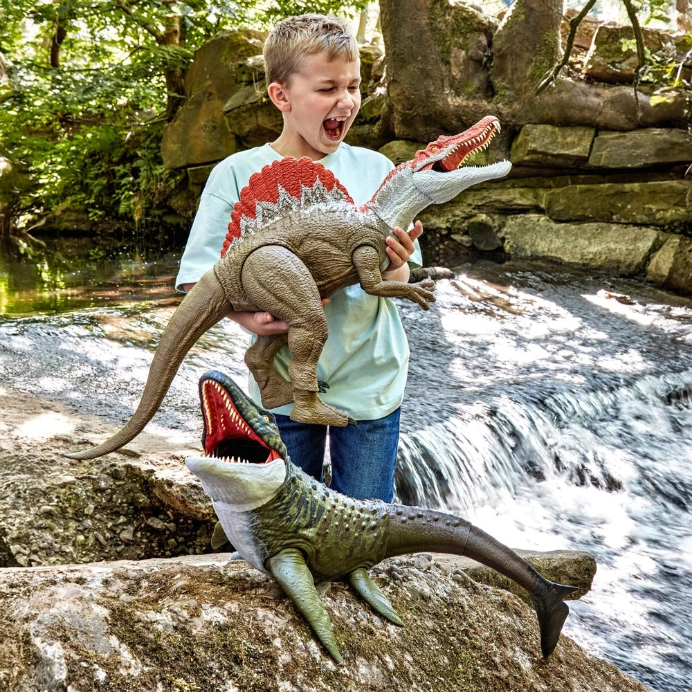 • Contents: 1x Jurassic World Super Colossal Spinosaurus action figure, 1x mini Velociraptor figure and 1x mini Triceratops figure